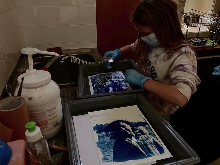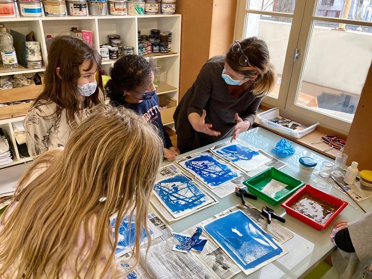 De retour au Dépôt, l’Atelier des Petits Photographes a initié les jeunes, à la cyanotypie, procédé ancien photographique aux teintes bleutées si caractéristiques.